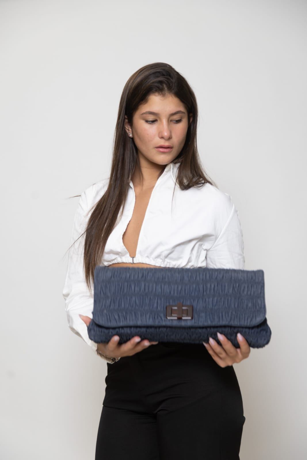 תיק קאלץ' פראדה Gaufre ג'ינס כחול
