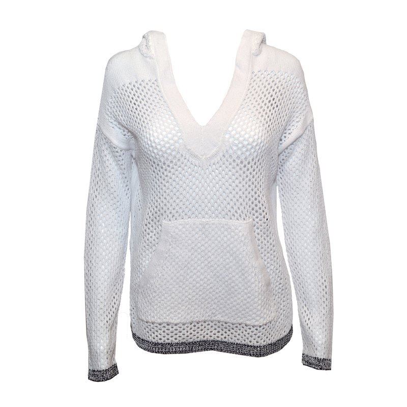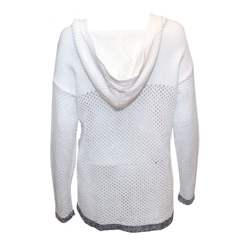 סוודר ראג אנד בון לבן עם קפוצ'ון